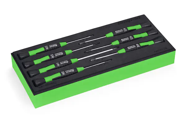 • Includes SGDE215ESDG–SGDE230ESDG flat tip screwdrivers, plus SGDEP200ESDG, SGDEP20ESDG, and SGDEP21ESDG PHILLIPS® tip screwdrivers in a PRO-FI™ organizer